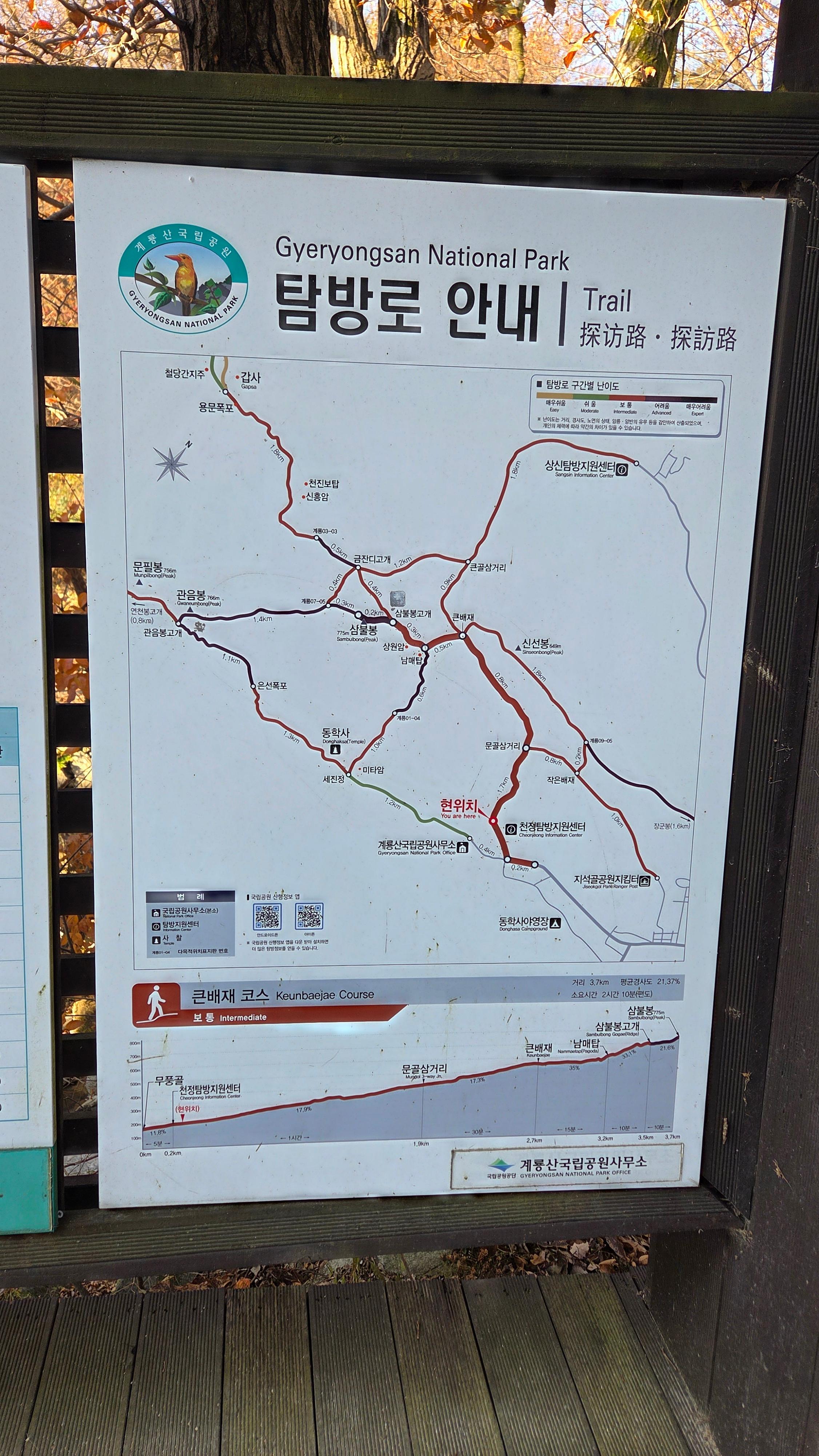 이동경로 : 동학사 주차장 - 천정탐방지원센터 - 남매탑 - 삼불봉 - 관음봉 - 동학사 원점 회귀 (총 9.6km, 4시간 소요)