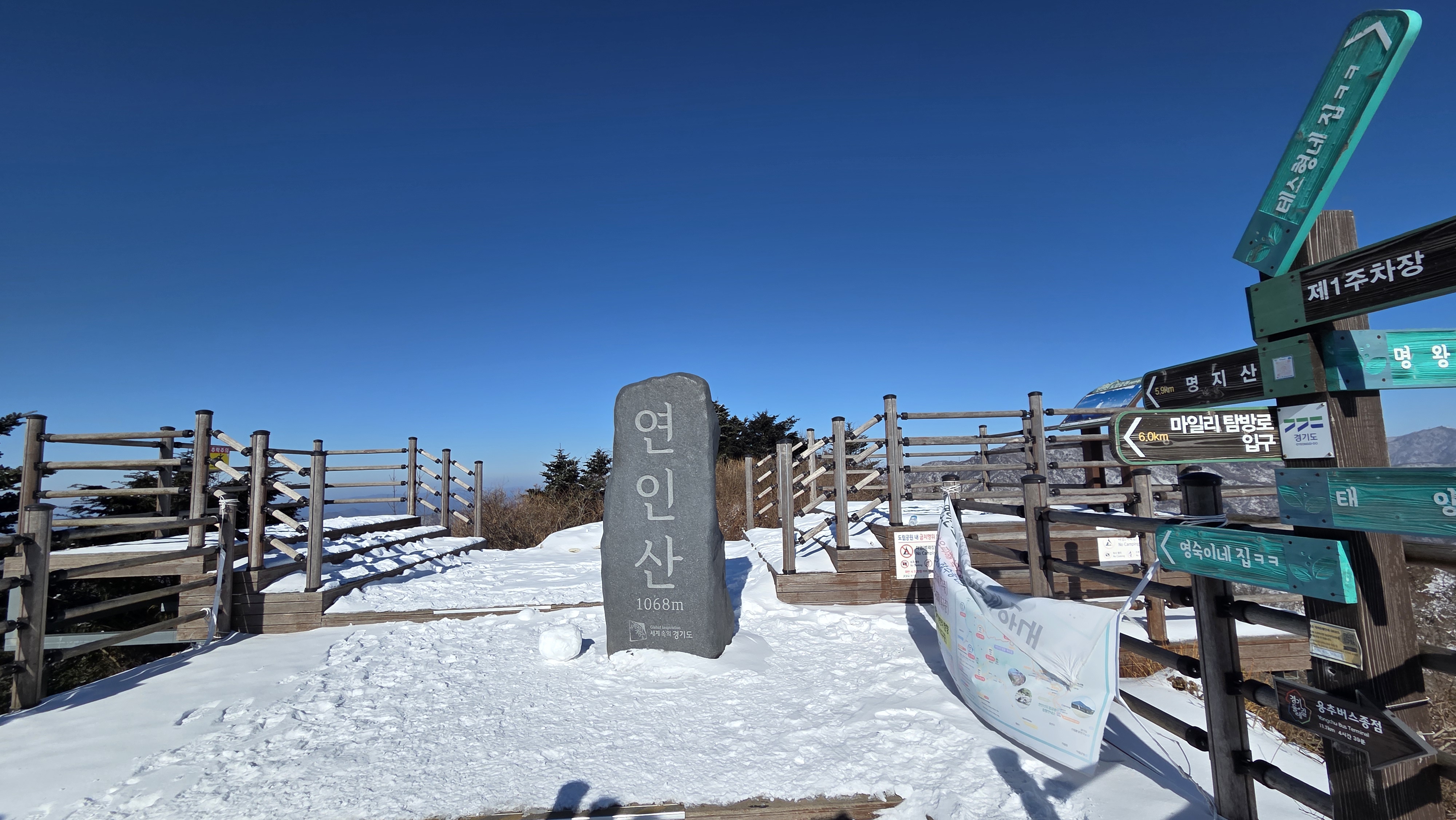 정상에는 데크가 잘 조성되어 있었지만 땀이 식으니 너무너무 추웠다.