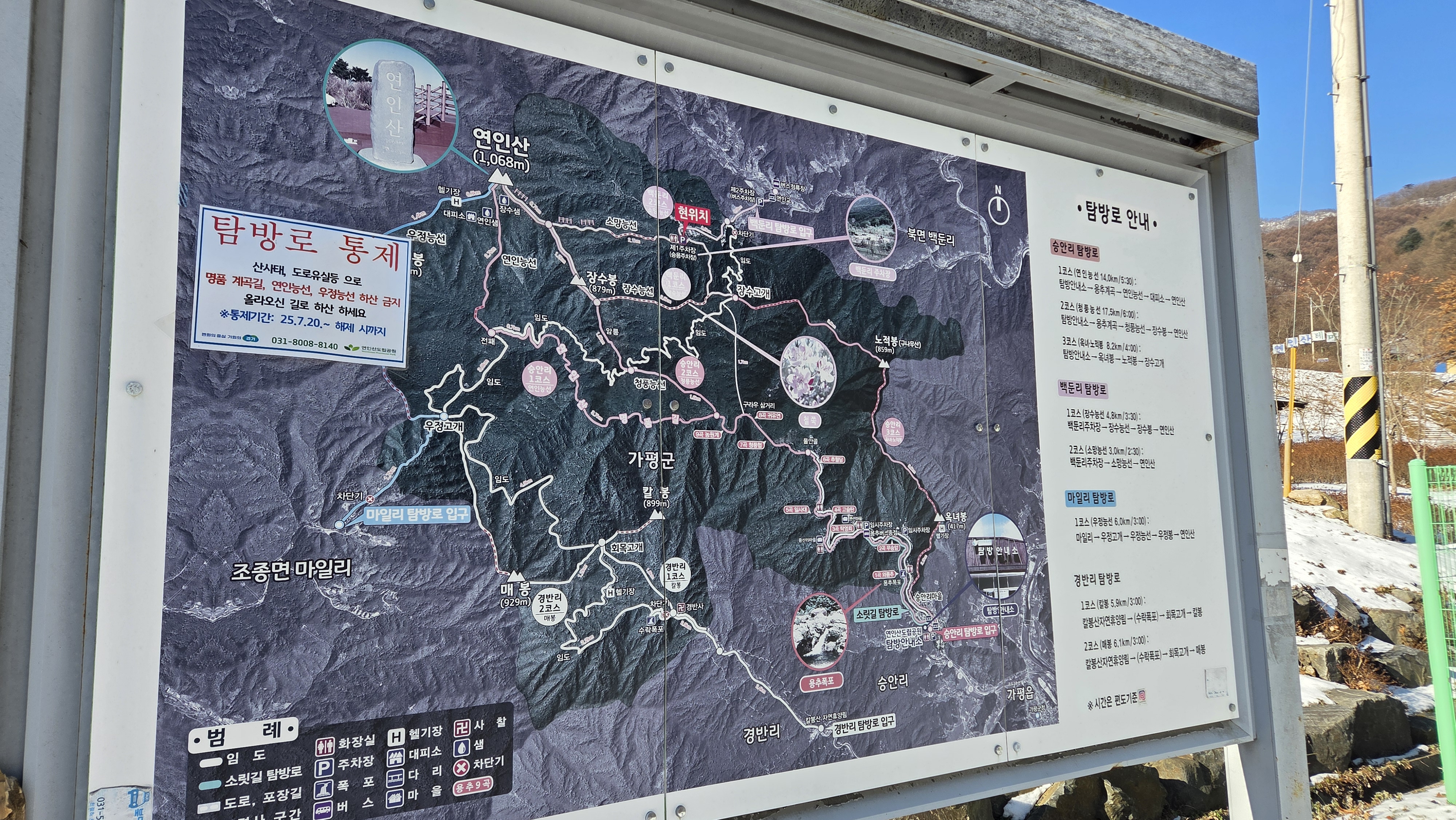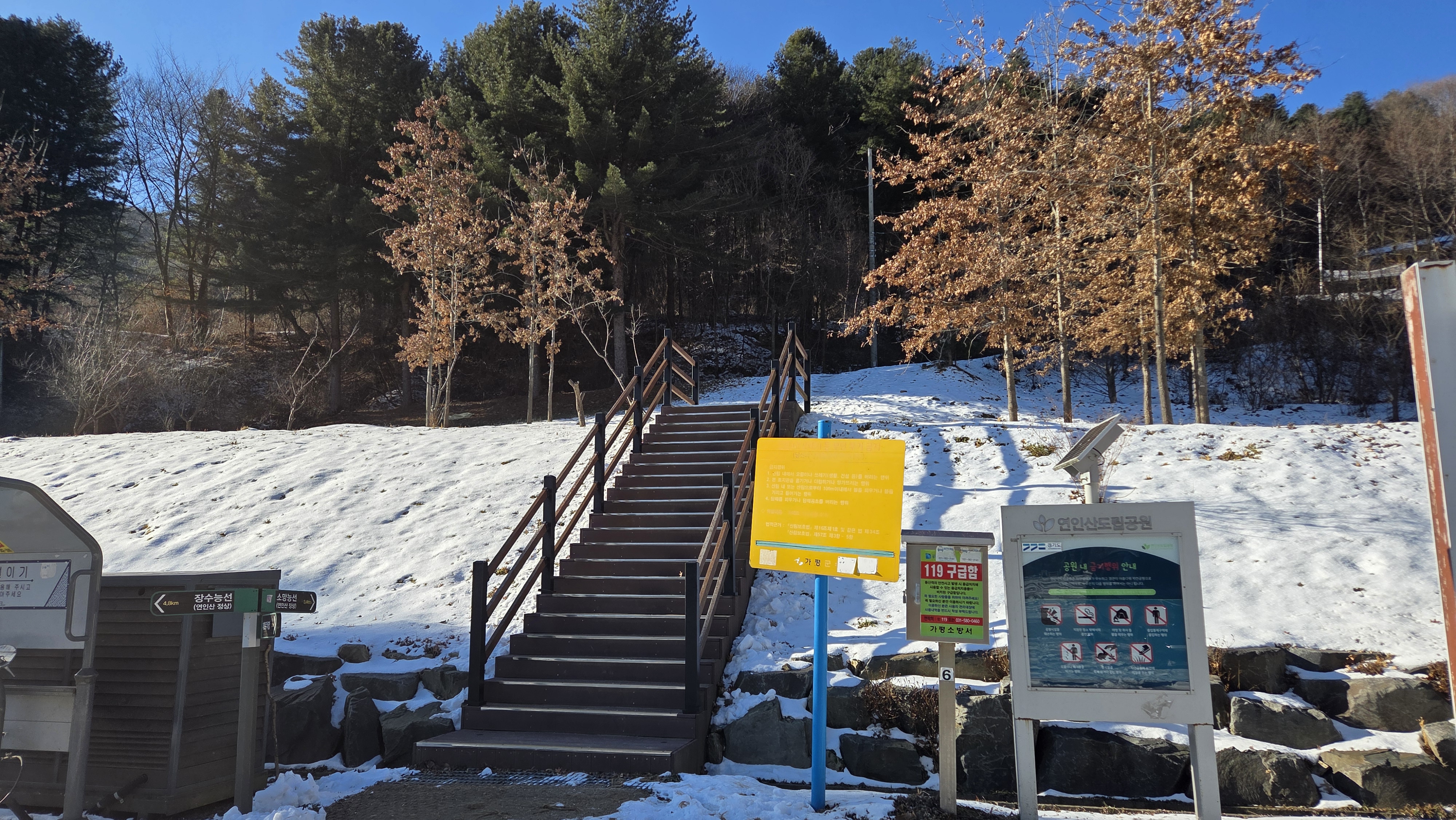 체감온도 영하 15도의 한파가 닥친날이다. 그래서 오늘 선택한 산행지는 겨울산행으로 추천되는 연인산이다. 가평에 있지만 집에서 2시간 이상 소요되어서 매번 강원도로 향했는데 숙제를 하는 기분으로 연인산으로 향했다. 연인산은 대표적인 흙산이라서 겨울산행으로 많이 추천되는 곳이다.