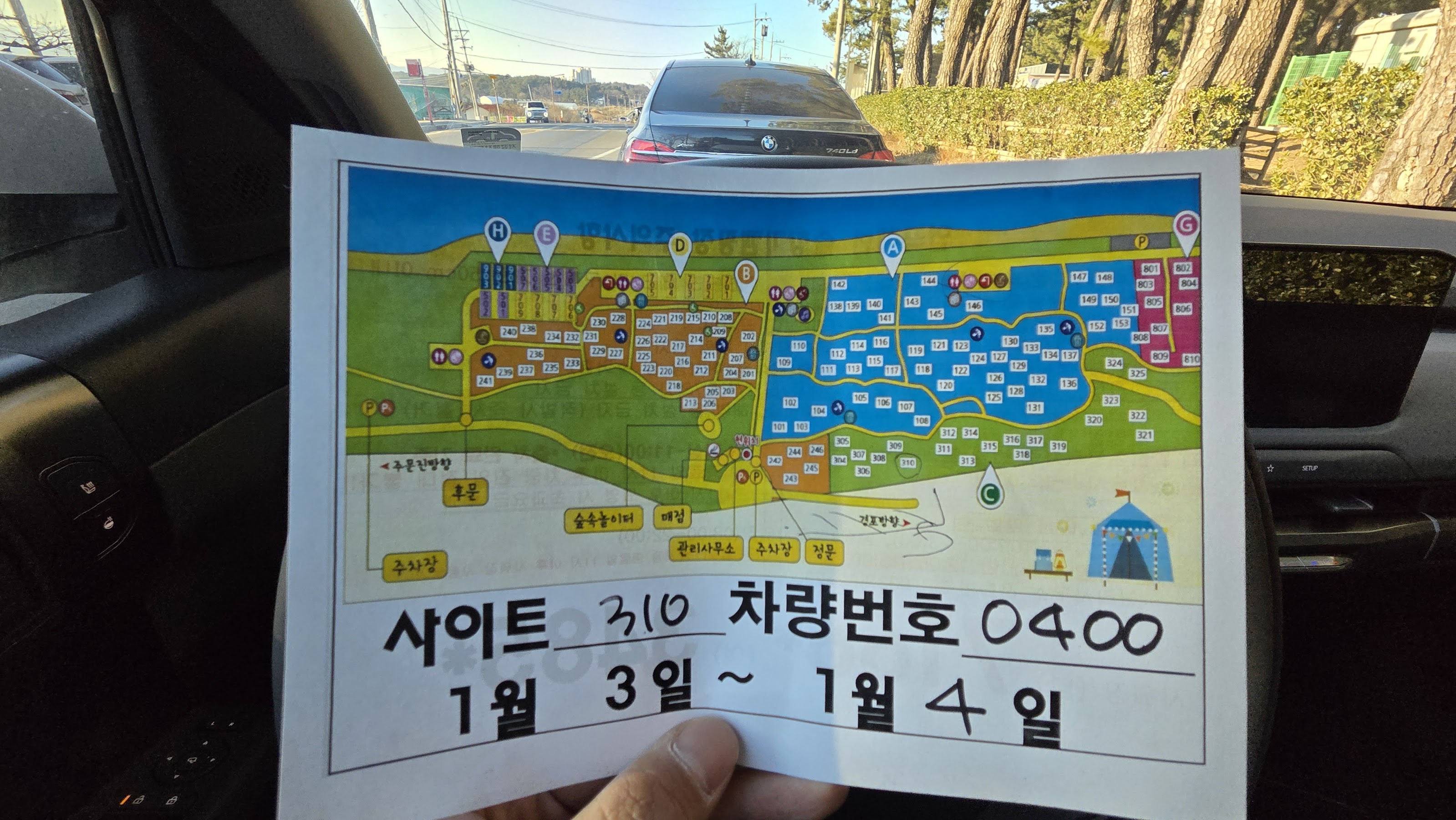C사이트는 아에 외부 갓길에 주차하는게 편하다고 해서 외부 갓길에 주차를 했다.