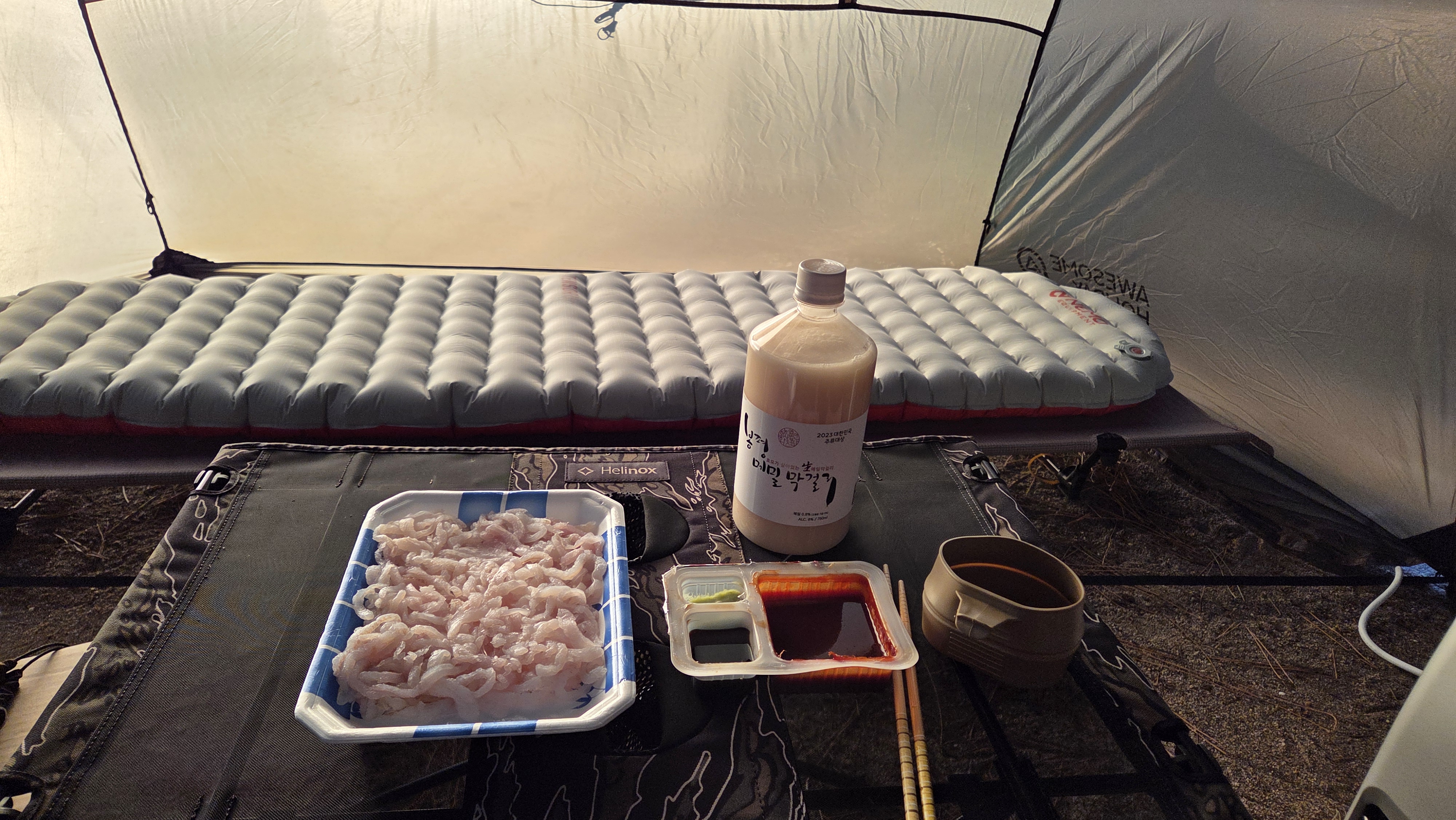 바닷가라 그런지 주변 하나로마트에서 맛있는 세꼬시와 막걸리를 먹으며 멋진 캠핑을 할 수 있었다.