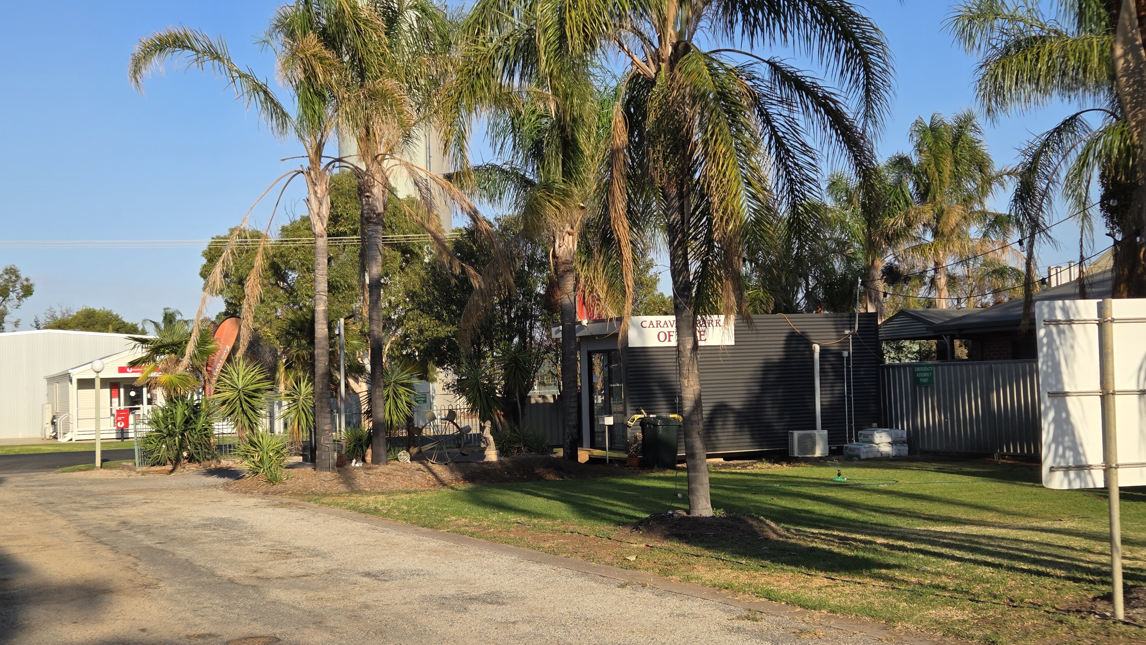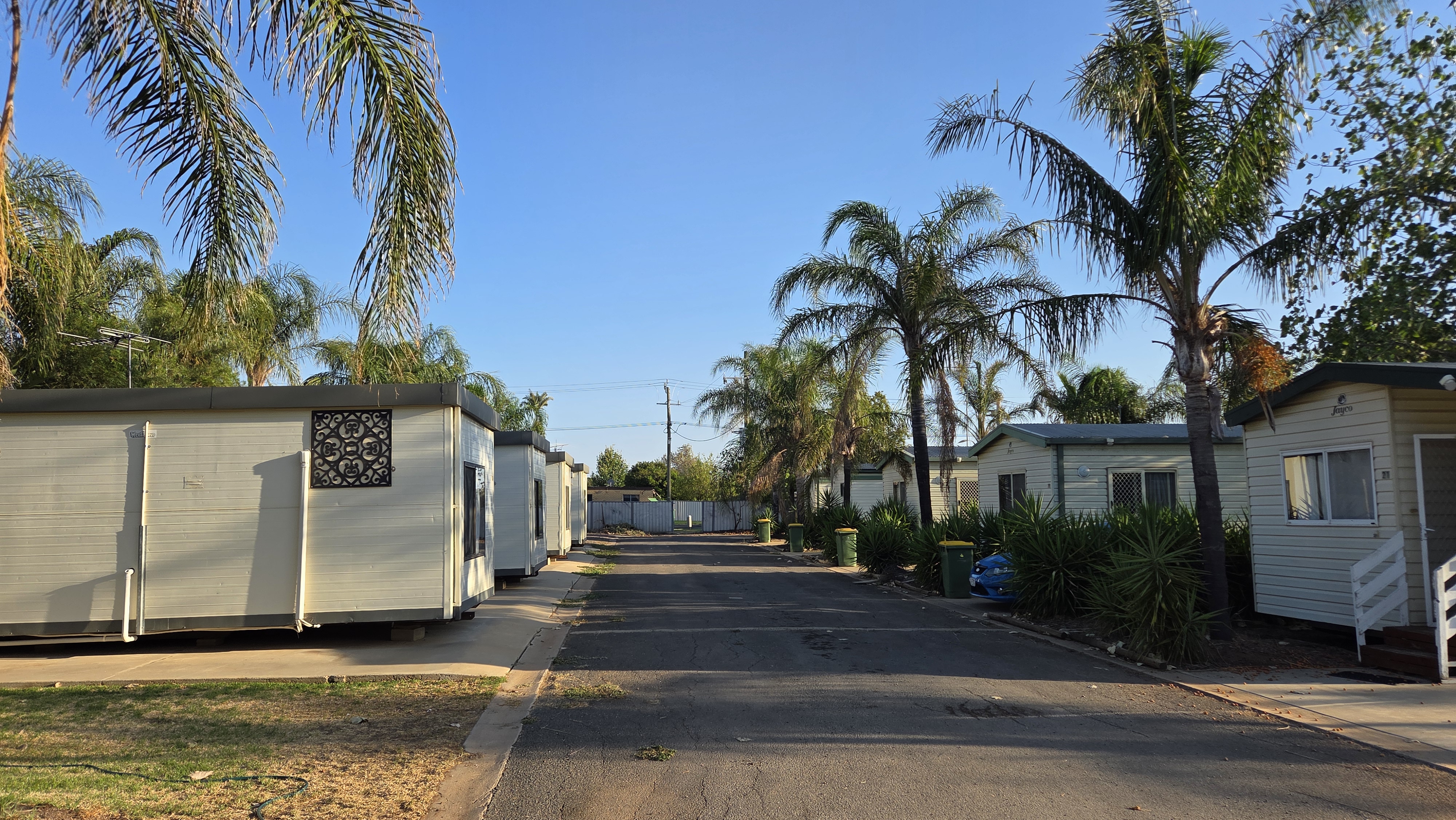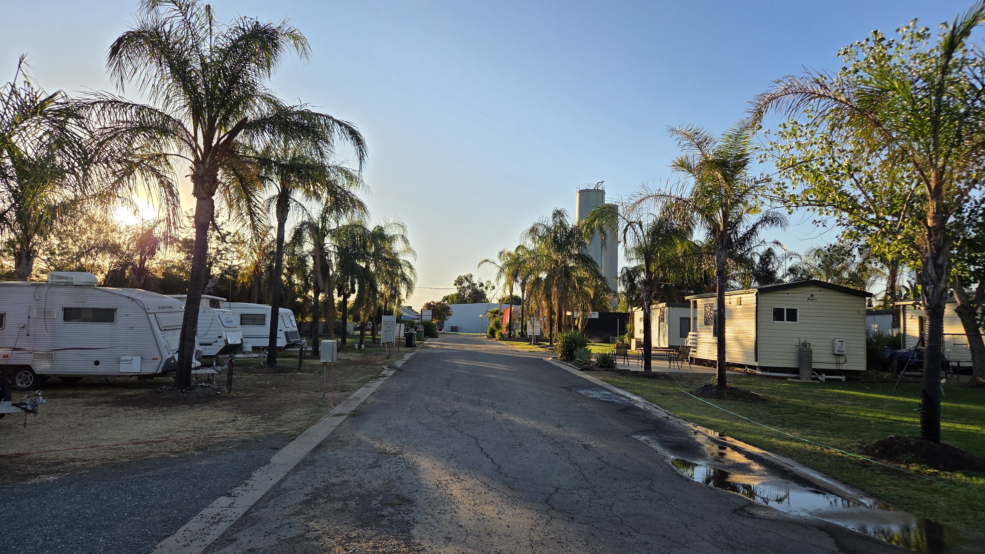카라반 파크가 머리강(Murray River)을 접하고 있어서 캐빈들 사이로 잔디 사이트가 있었는데 주인분이 거기다 피칭을 하라고 했다. 강물이 맑지는 않았지만 동남아 강변 느낌이 나는 리버뷰였다ㅎㅎ 캐빈 이용객을 제외하면 우리랑 다른 카라반 한 대만이 캠퍼였고 나머지는 캐빈의 장기 거주자들인 것 같았다.
