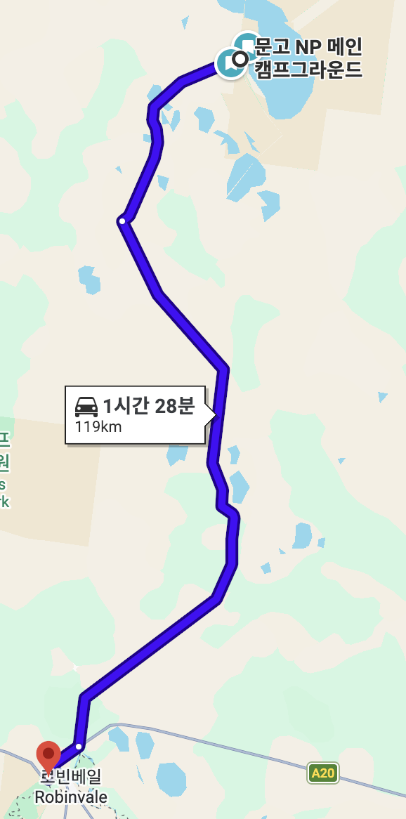 원래 목적지는 문고 국립공원에서 1박을 하고 씨레이크로 가는 것이였지만 문고 국립공원을 나오니 오후 5시가 넘어서 가장 가까운 마을에서 1박을 하기로 했다. 호주 로드트립에서 느낀 점은 마을마다 카라반 파크가 있다는 것이다. 그러니 유명한 관광지 근처에서 1박을 할 수도 있지만 그냥 길을 따라가다가 분위기가 좋은 곳에서 즉흥적으로 1박을 해도 로드트립이 가능할 것 같다는 생각이 들었다.