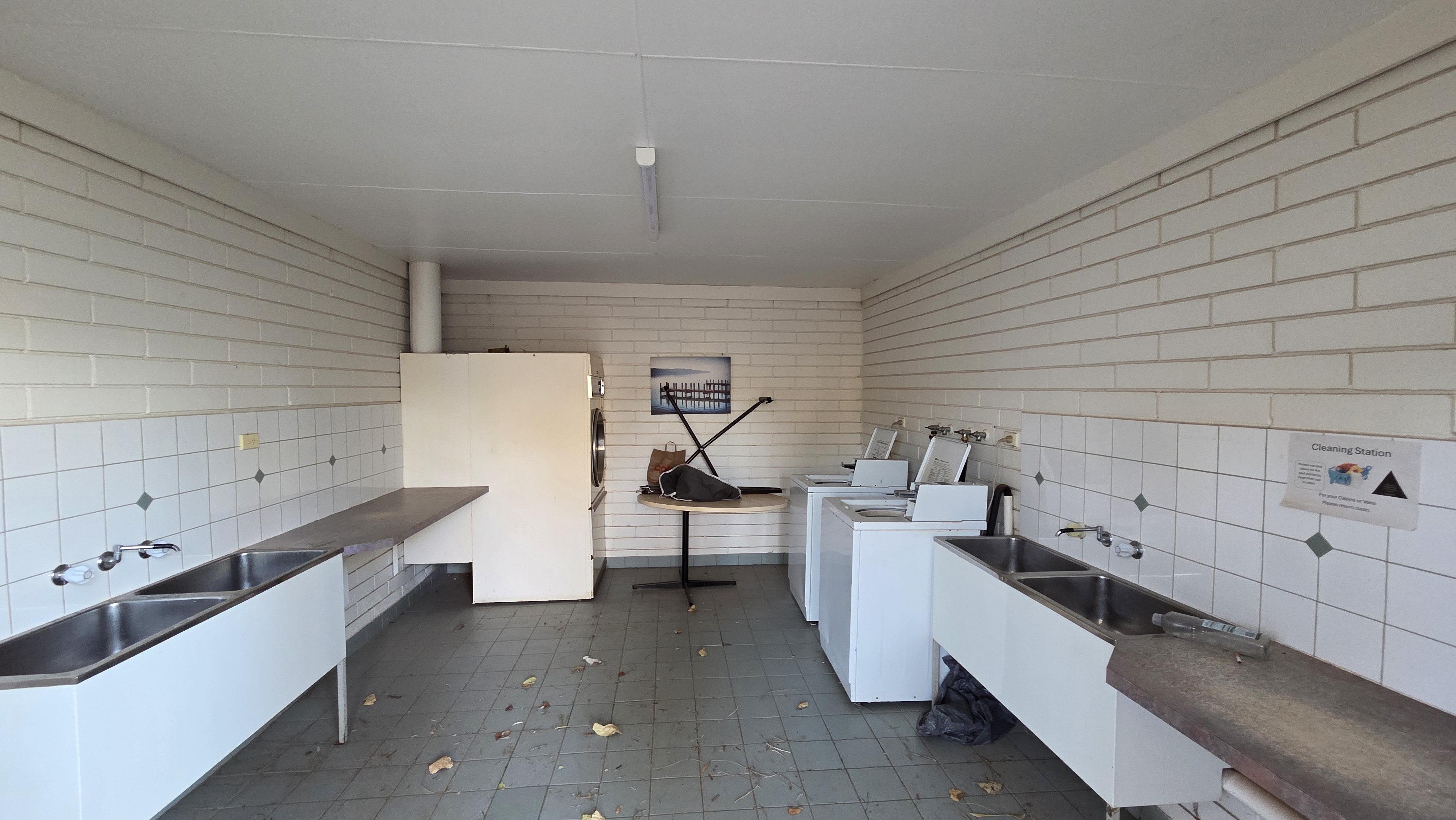 세탁실에는 건조기와 세탁기가 있었고, 여기서 우리는 설거지를 했다. 온수가 잘 나왔다.