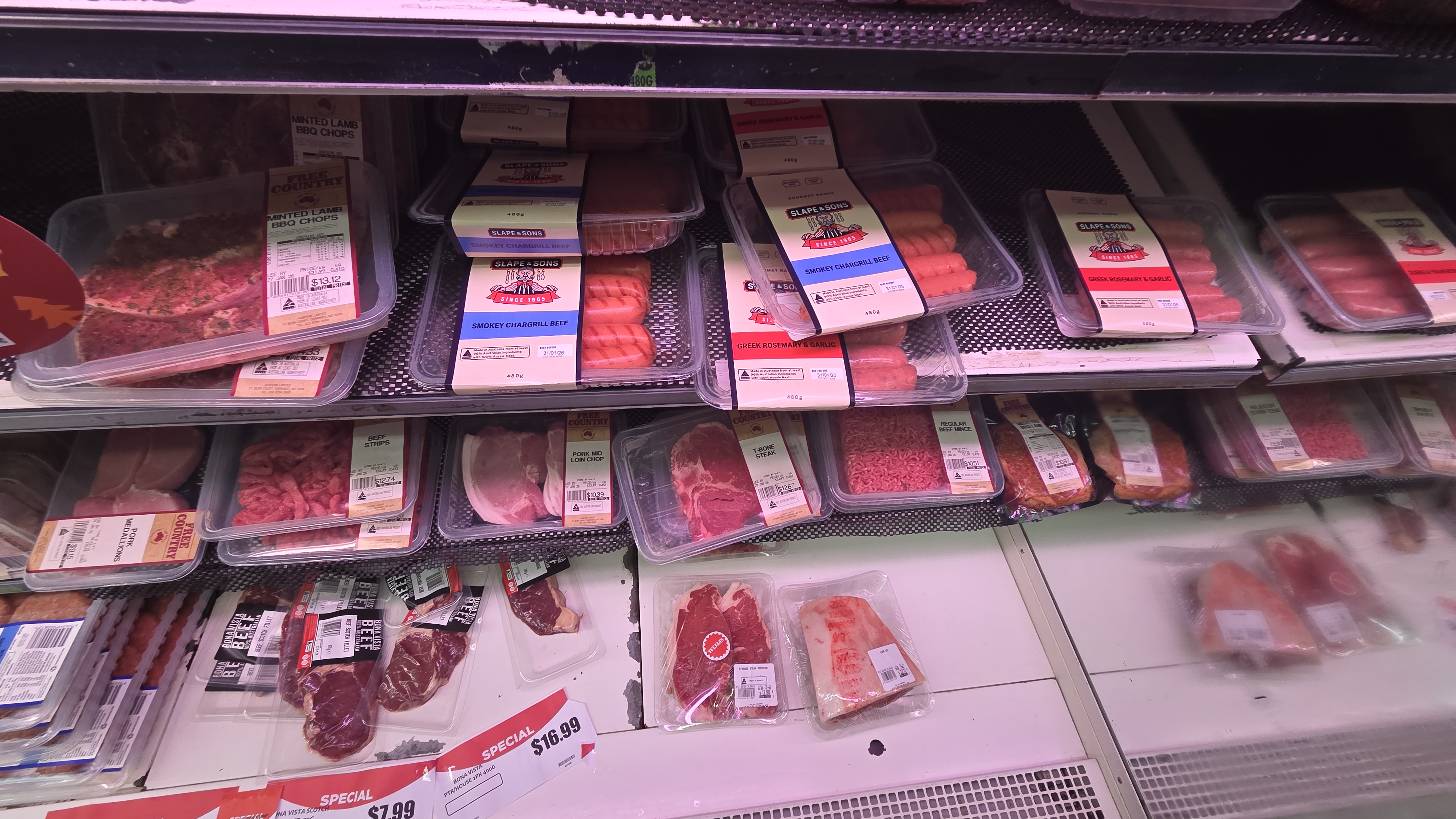 고기는 오히려 저렴했는데 티본 스테이크가 1kg당 35달러(한화 약 35,000원) 정도였다. 양념된 양 바베큐가 1kg당 32달러(한화 약 32,000원)이라서 티본 스테이크와 양고기를 구입했다.