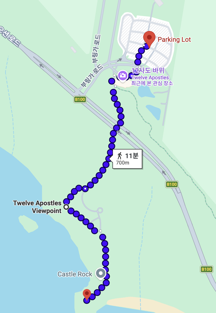 5일차에는 포트 캠벨을 중심으로 서쪽을 6일차에는 동쪽을 살펴보기로 했다. 멜버른까지 거리가 짧아서 일정에 여유가 있었기에 둘째날은 트레킹을 더 즐겨보기로 했다.