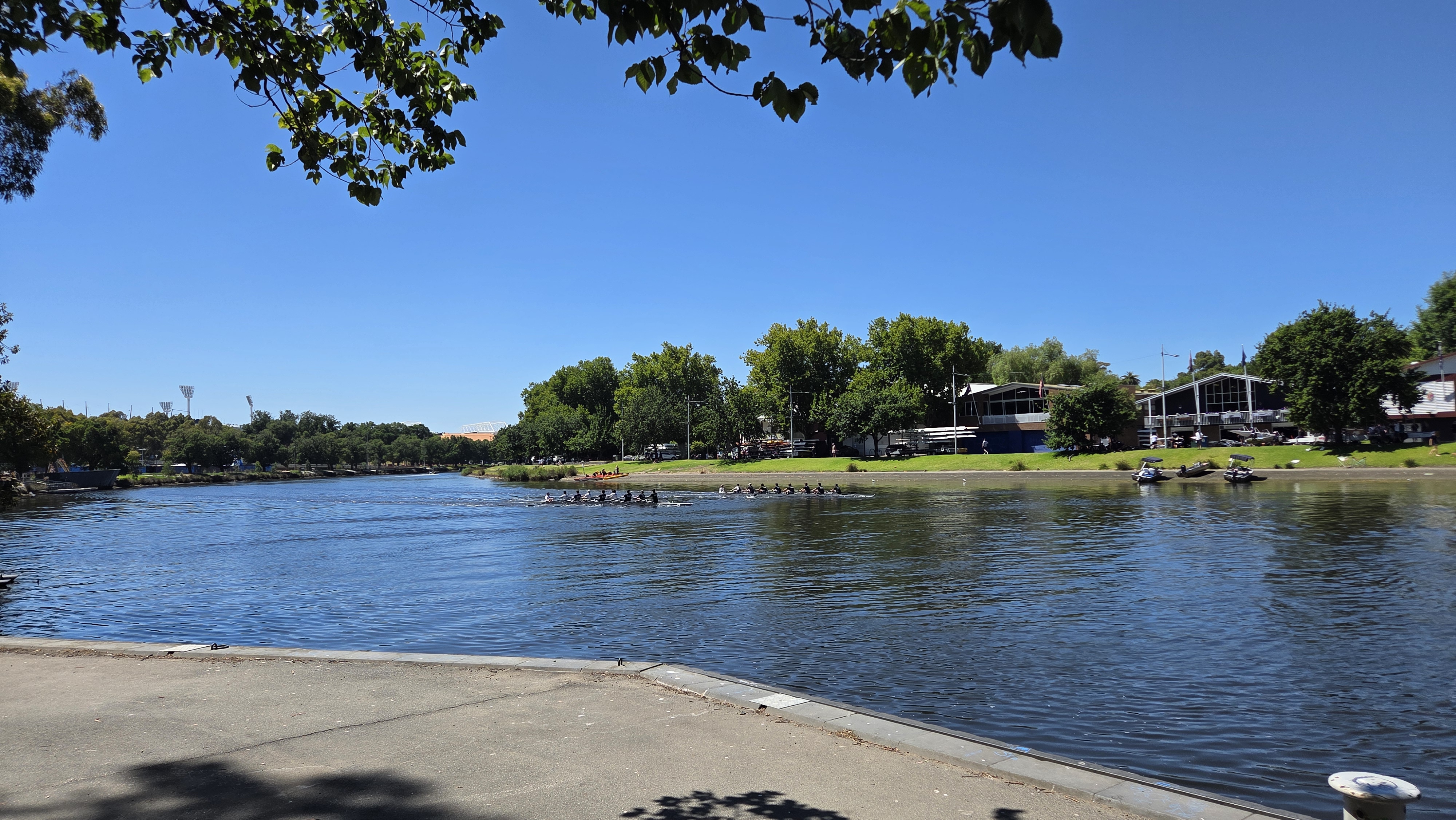 한적하고 여유로운 강변이다. 주말인데도 사람이 많이 붐비진 않았다. 조정 연습인지 경기인지 열심히 하고 있었다.