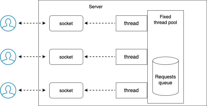 Spring MVC스프링 MVC의 기본동작은 ThreadPerRequest이다. Sync/Blocking1 Request -> 1 Thread많은 수의 Thread Pool을 사용한다.스레드 수가 너무 많으면 컨텍스트 스위칭에 대한 비용이 증가스레드 수가 너무 적으면 스레드 고갈로 인한 지연이 발생하는 문제점을 가지고 있다.처리 순서는 다음과 같다.일단 요청이 들어오면 스레드를 하나 할당 받는다.요청은 Filter -> DispatcherServlet -> Controller로 전달되고, 해당 스레드는 IO작업이 발생하더라도 블락킹된다.Spring WebFlux스프링 WebFlux의 동작 방식은 EventLoop이다. Async/Non-BlockingN Request -> 1 ThreadN: M 이지만 ..